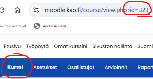 Kurssin ID-numero näkyy esim. selaimen osoitekentässä (URL).