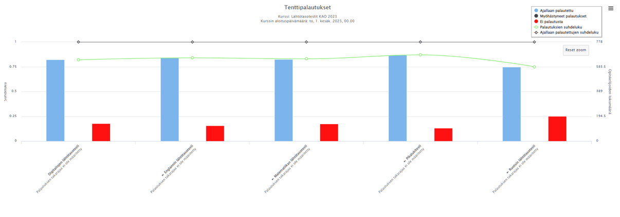 Näyttää tehtyjen palautusten tilastot koko toteutuksen ajalta.