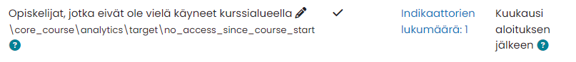 Lähettää herätteen kurssin opettajalle, jos opiskelija on lisätty kurssialueelle, mutta ei vielä ole käynyt siellä kuukausi aloituksen jälkeen.